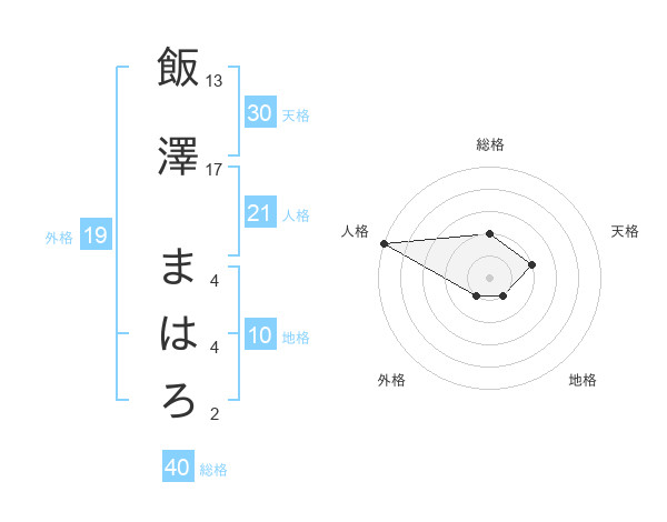飯澤 まはろさんの天格は30画の2点!