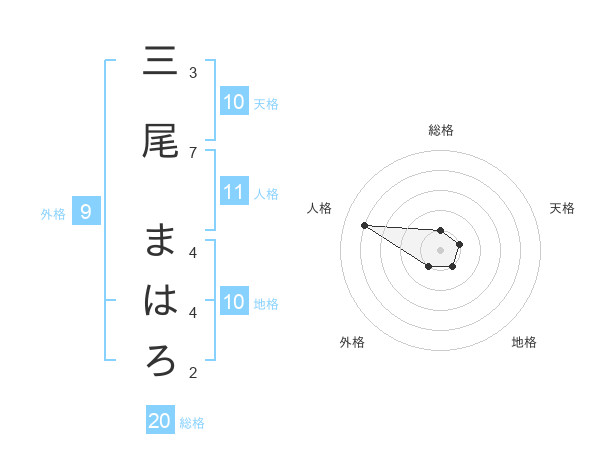 三尾 まはろさんを姓名の画数から五運を鑑定