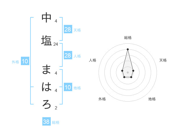 中塩 まはろさんの総格は38画の4点!