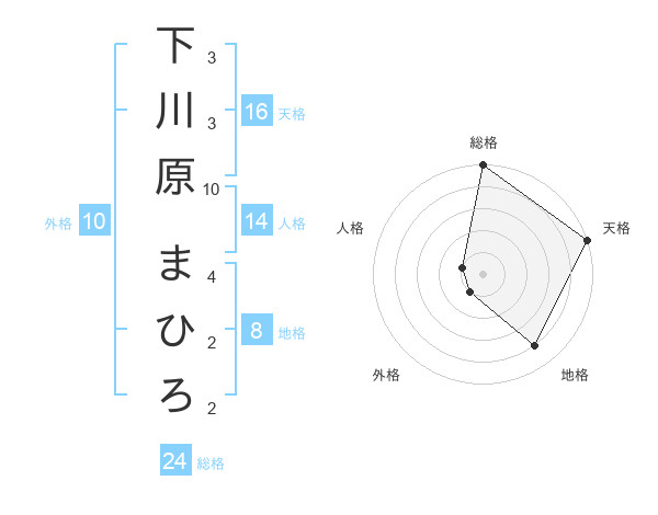 下川原 まひろさんを姓名の画数から五運を鑑定
