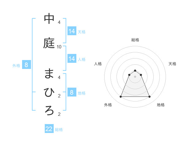中庭 まひろさんの総格は22画の1点!