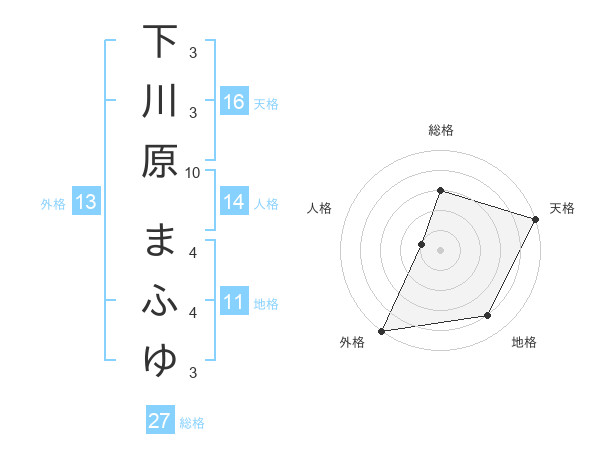 下川原 まふゆさんを姓名の画数から五運を鑑定