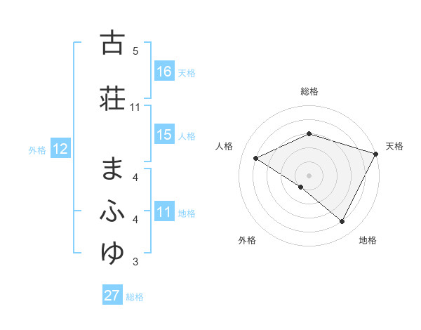 古荘 まふゆさんを姓名の画数から五運を鑑定