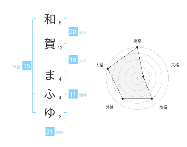 和賀 まふゆさんを姓名の画数から五運を鑑定