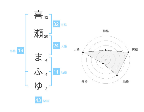 喜瀬 まふゆさんを姓名の画数から五運を鑑定