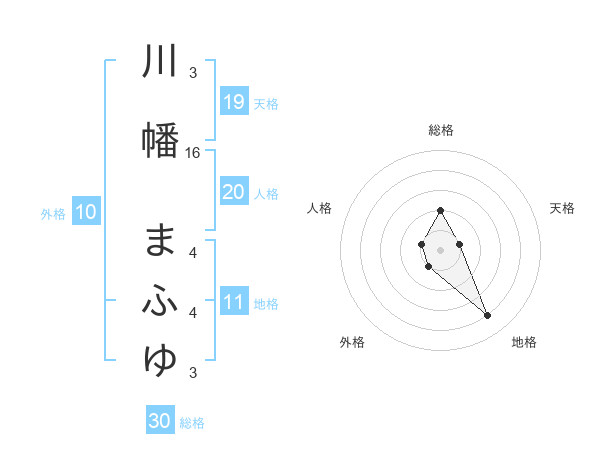 川幡 まふゆさんを姓名の画数から五運を鑑定