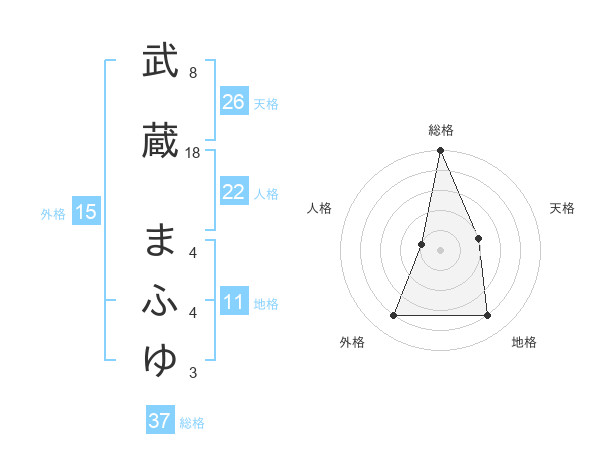 武蔵 まふゆさんを姓名の画数から五運を鑑定