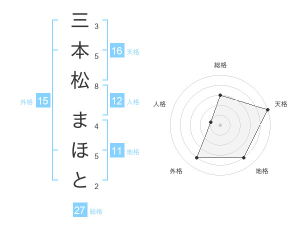 三本松 まほとさんを姓名の画数から五運を鑑定