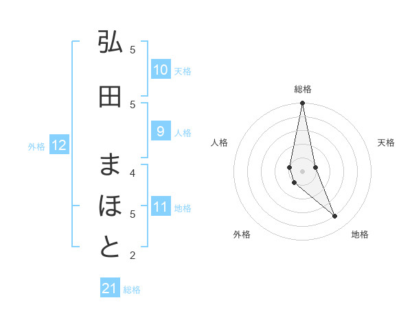 弘田 まほとさんを姓名の画数から五運を鑑定