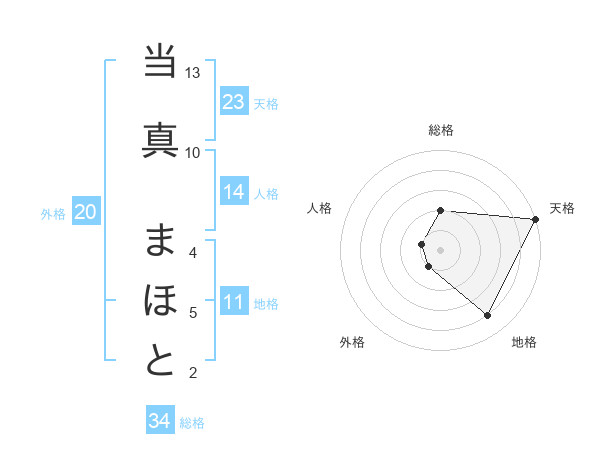 当真 まほとさんの天格は23画の5点!
