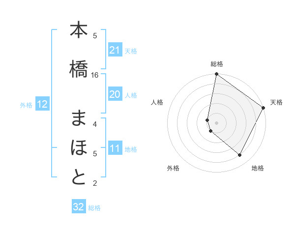 本橋 まほとさんの総格は32画の5点!