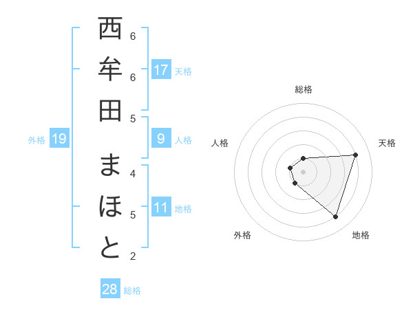 西牟田 まほとさんの天格は17画の4点!