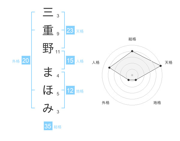 三重野 まほみさんの天格は23画の5点!