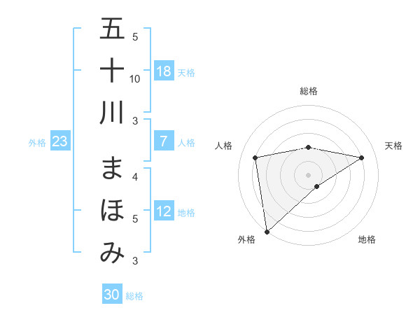 五十川 まほみさんを姓名の画数から五運を鑑定