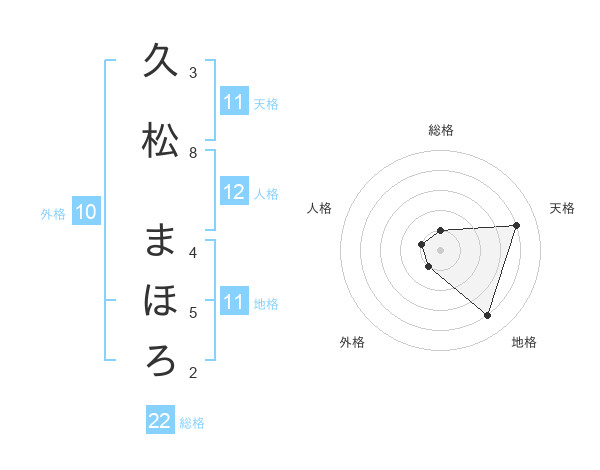 久松 まほろさんの天格は11画の4点!