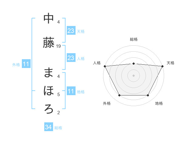中藤 まほろさんの天格は23画の5点!