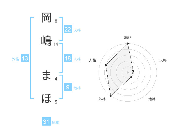 岡嶋 まほさんを姓名の画数から五運を鑑定
