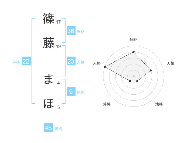 篠藤 まほさんを姓名の画数から五運を鑑定