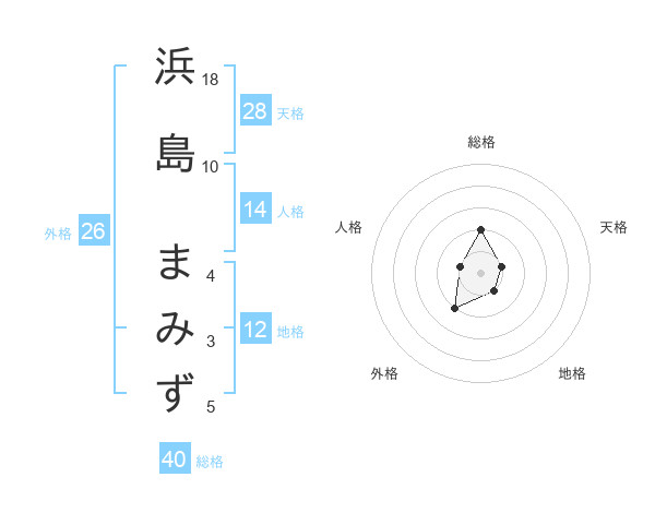 浜島 まみずさんの総格は40画の2点