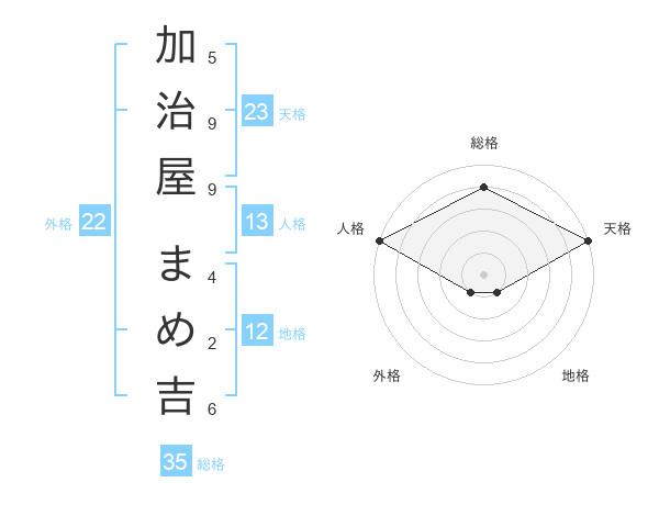 加治屋 まめ吉さんの天格は23画の5点
