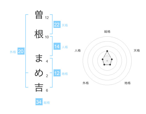 曽根 まめ吉さんを姓名の画数から五運を鑑定