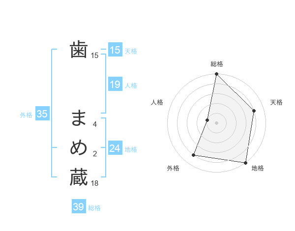 歯 まめ蔵さんの総格は39画の5点!