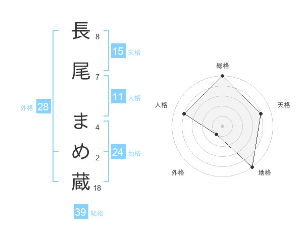 長尾 まめ蔵さんを姓名の画数から五運を鑑定