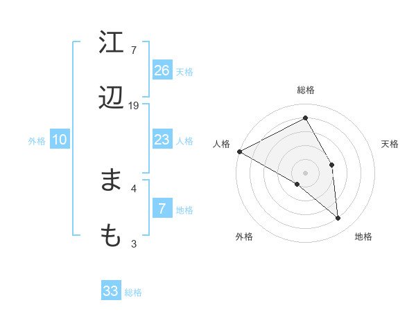 江辺 まもさんの総格は33画の4点!