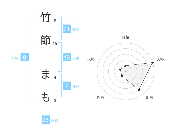 竹節 まもさんの総格は28画の1点!
