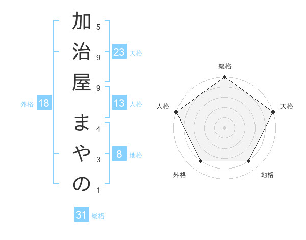 加治屋 まやのさんを姓名の画数から五運を鑑定