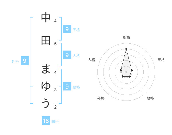 中田 まゆうさんを姓名の画数から五運を鑑定