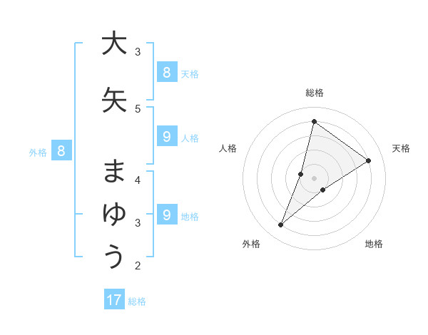 大矢 まゆうさんを姓名の画数から五運を鑑定