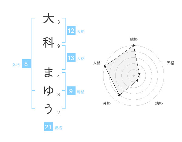 大科 まゆうさんを姓名の画数から五運を鑑定
