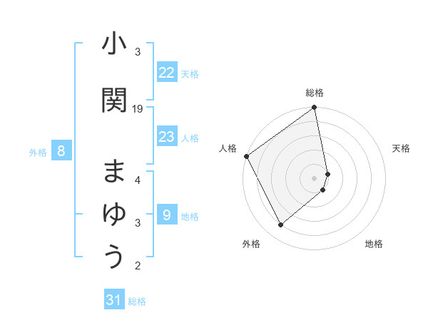 小関 まゆうさんを姓名の画数から五運を鑑定