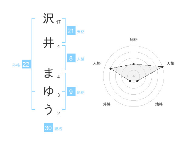 沢井 まゆうさんを姓名の画数から五運を鑑定