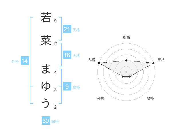 若菜 まゆうさんを姓名の画数から五運を鑑定