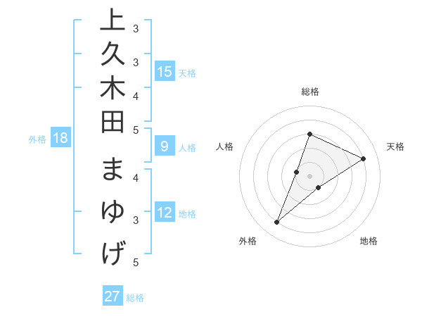 上久木田 まゆげさんを姓名の画数から五運を鑑定