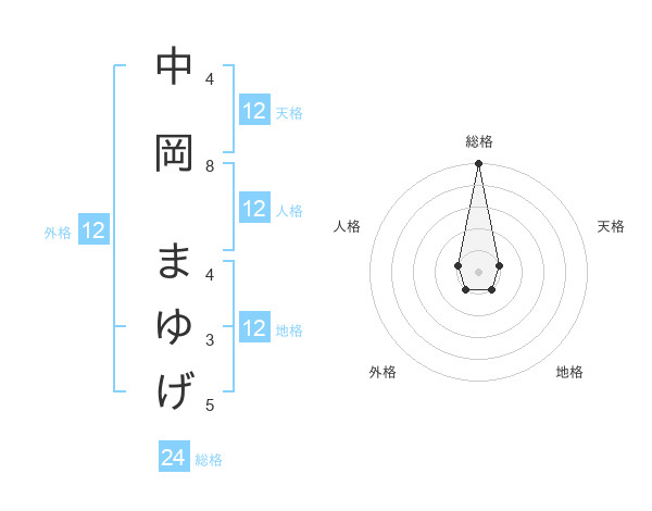 中岡 まゆげさんを姓名の画数から五運を鑑定
