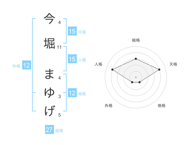 今堀 まゆげさんを姓名の画数から五運を鑑定