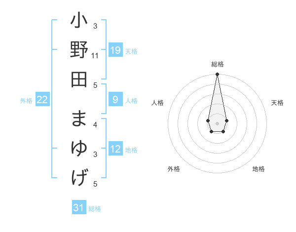 小野田 まゆげさんを姓名の画数から五運を鑑定