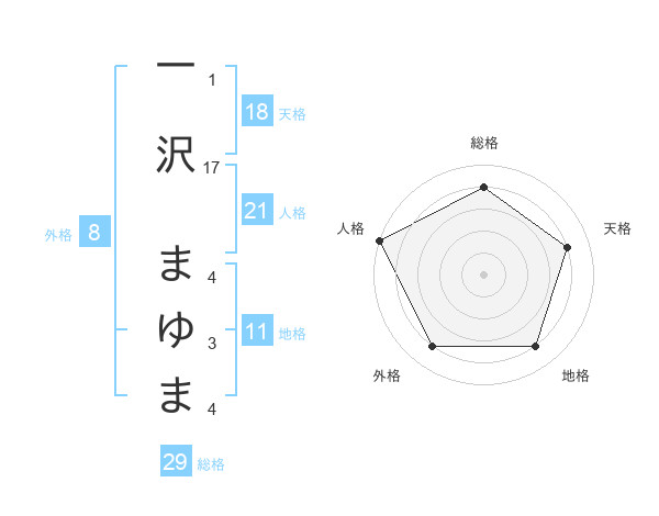 一沢 まゆまさんの総格は29画の4点!