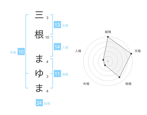 三根 まゆまさんを姓名の画数から五運を鑑定