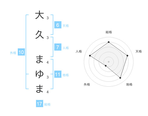 大久 まゆまさんの総格は17画の4点!