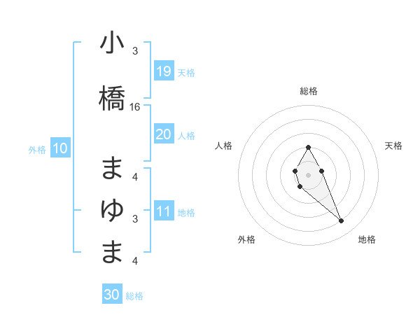 小橋 まゆまさんを姓名の画数から五運を鑑定