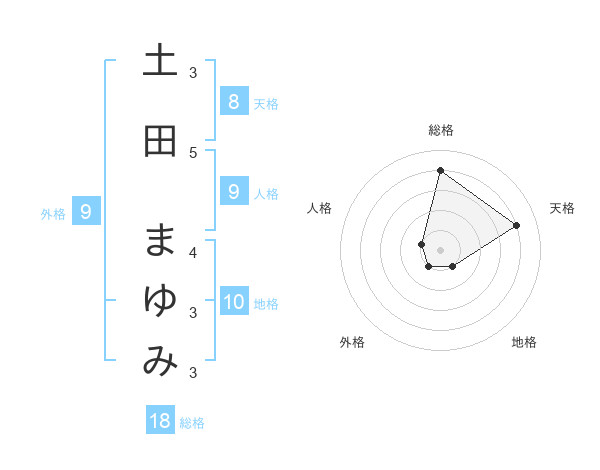 土田 まゆみさんを姓名の画数から五運を鑑定