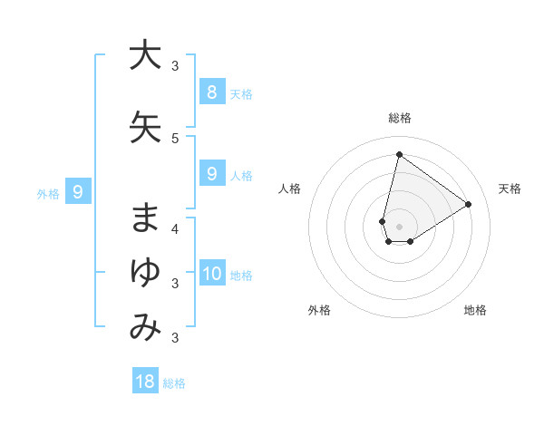 大矢 まゆみさんを姓名の画数から五運を鑑定