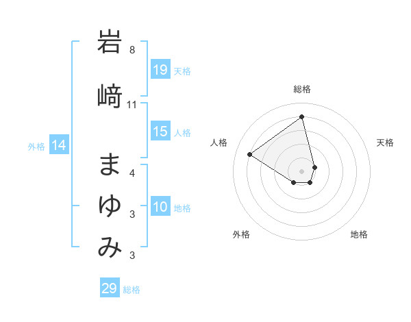 岩﨑 まゆみさんを姓名の画数から五運を鑑定