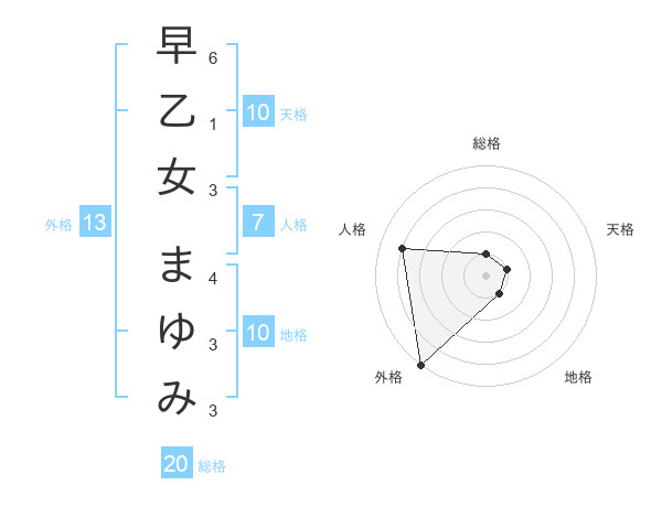 早乙女 まゆみさんを姓名の画数から五運を鑑定