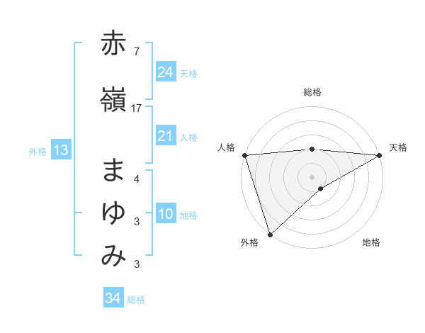 赤嶺 まゆみさんの総格は34画の2点!