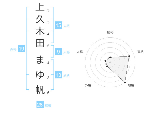 上久木田 まゆ帆さんを姓名の画数から五運を鑑定